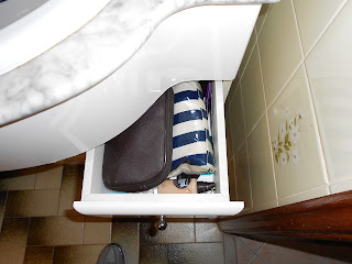 A minha casa de banho são quase duas... tem um espaço exterior com um lavatório e armário, e outro interior com banheira, sanita, bidé e outro lavatório. Não é muito bonita, evidenciando claramente a época em que foi construída... mas quanto a isso o destralhamento não ajuda!